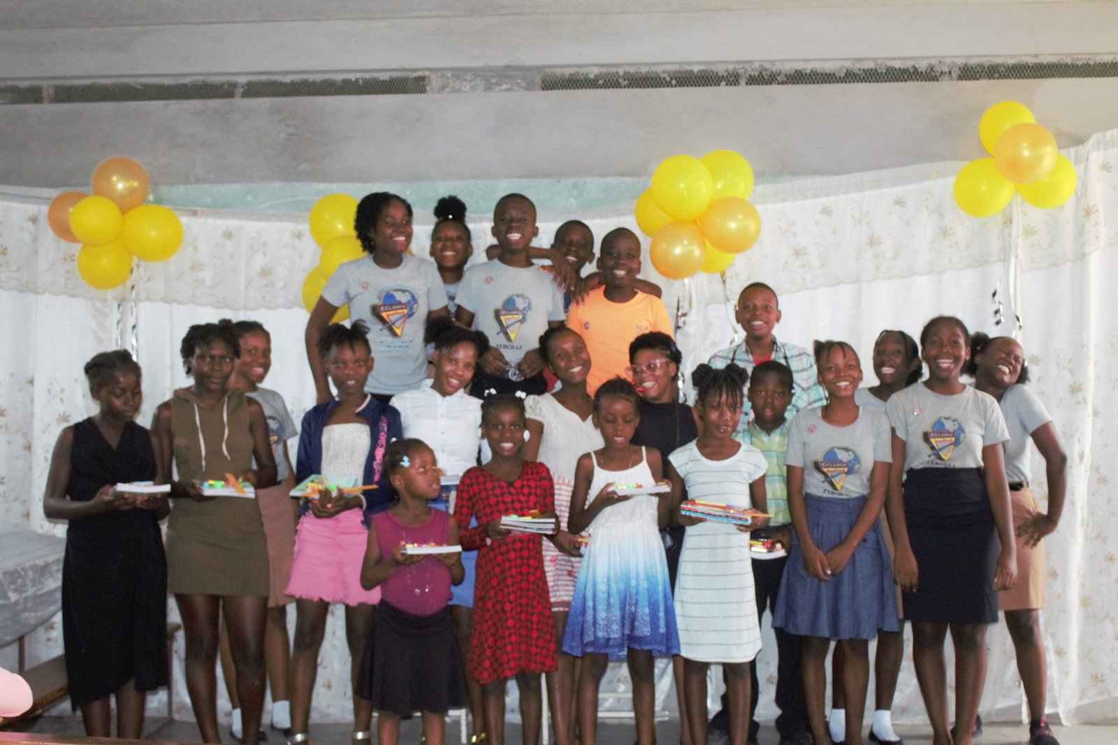 23 novanm 2023 anviwon douz timoun nan klèb jenès legliz advantis Jenezarèt Petyonvil sou sipèvizon ekip PEPCHA te òganize yon bèl seremoni aktivite kote yo remèt ak yon kenzèn timoun divès materyèl lekòl tankou kaye, plim, kreyon, kreyon desen, bwat enstriman jewometri, règ….